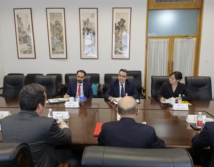 4月3日,土耳其驻华大使塞尔丘克·于纳尔(Selcuk Unal)到访国际合作中心建国门办公区。国际合作中心首席专家、新华社原副社长兼常务副总编辑马胜荣,国际合作中心联席会议召集人兼指导委员会主任张彧会见塞尔丘克·于纳尔。本次会谈双方着眼当今世界大势与地区形势,认为应从战略高度和长远角度看待和发展中土关系。双方同意国际合作中心与土耳其驻华大使馆构建中土双边“一轨半”长期对话磋商机制,为两国加强战略协作发挥重要作用。双方围绕双边关系中的战略性、前瞻性和综合性议题深入交流,就当前国际和地区形势发展进行了富有成效的讨论,达成了预期会谈成果。